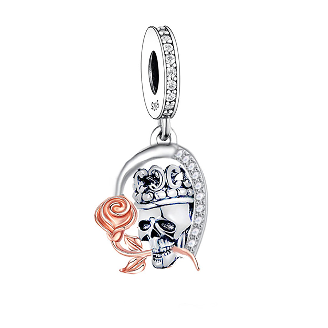 925 sterling silver skull bite flower