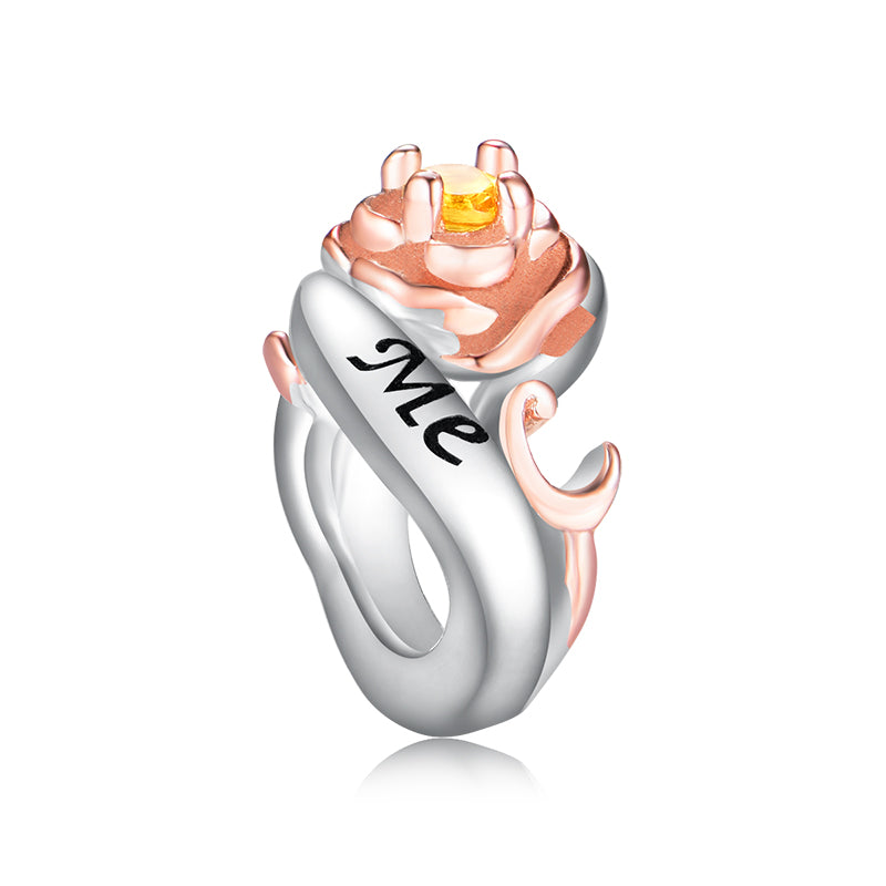925 sterling silver- I Love You Red Heart Rose Charm