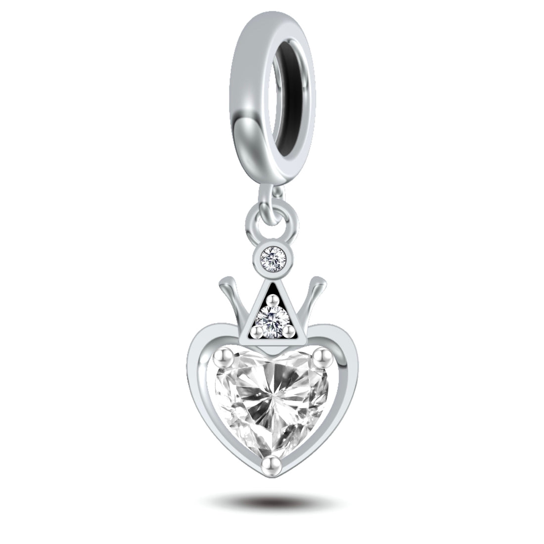925 sterling silver Pink Heart & Diamond Pendant Charm