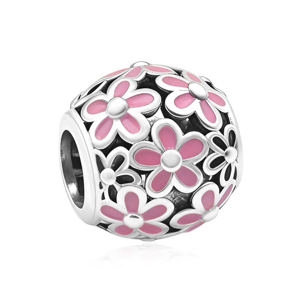 "Blossom Echo" Pink Daisy Spacer - 925 Sterling Silver Floral Bead