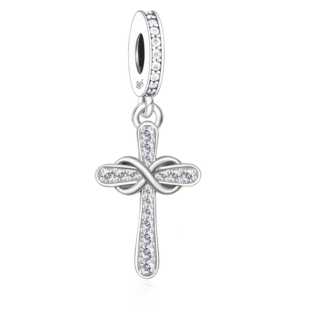 "Infinite Grace" Infinity Cross Dangle - 925 Sterling Silver Pave Sparkling Faith Charm