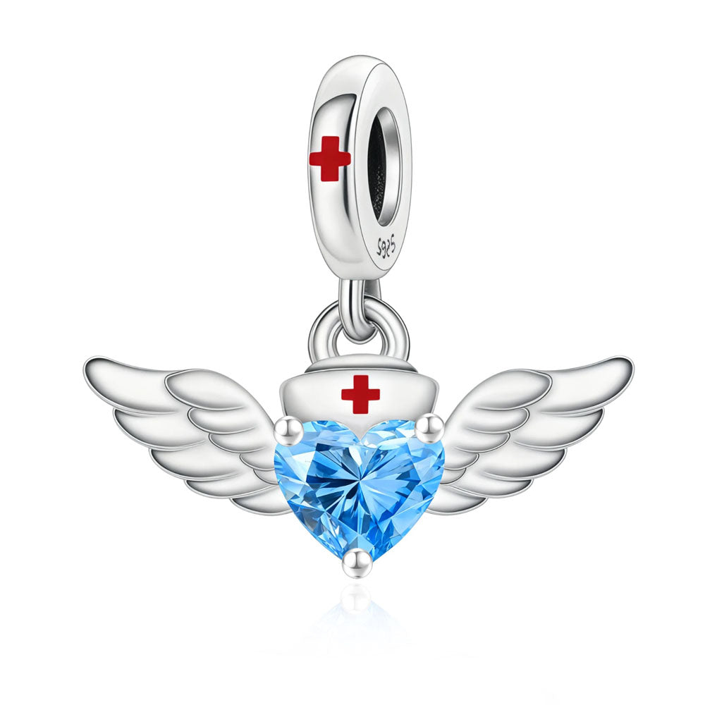 "Healing Wings" Nurse Angel Dangle - 925 Silver Blue Heart Charm