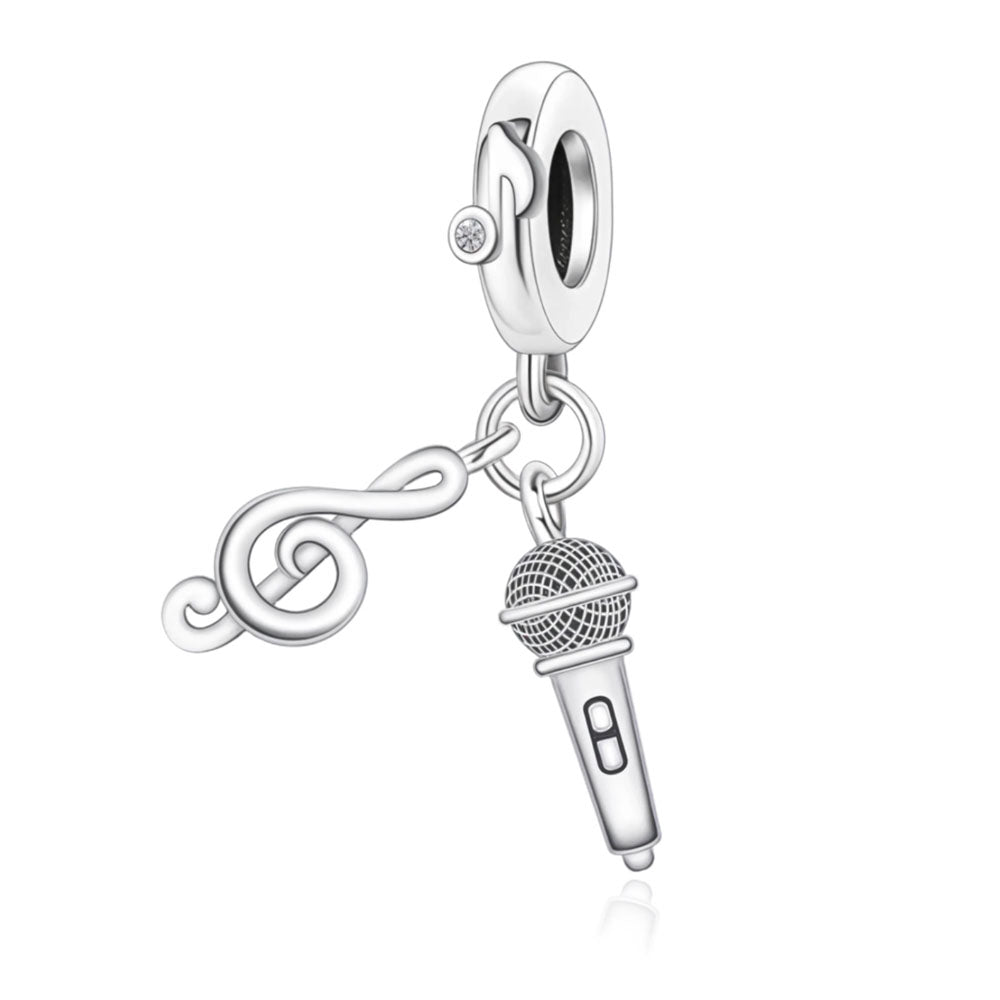 "Soul Melody" Musical Note & Microphone Dangle - 925 Silver Charm