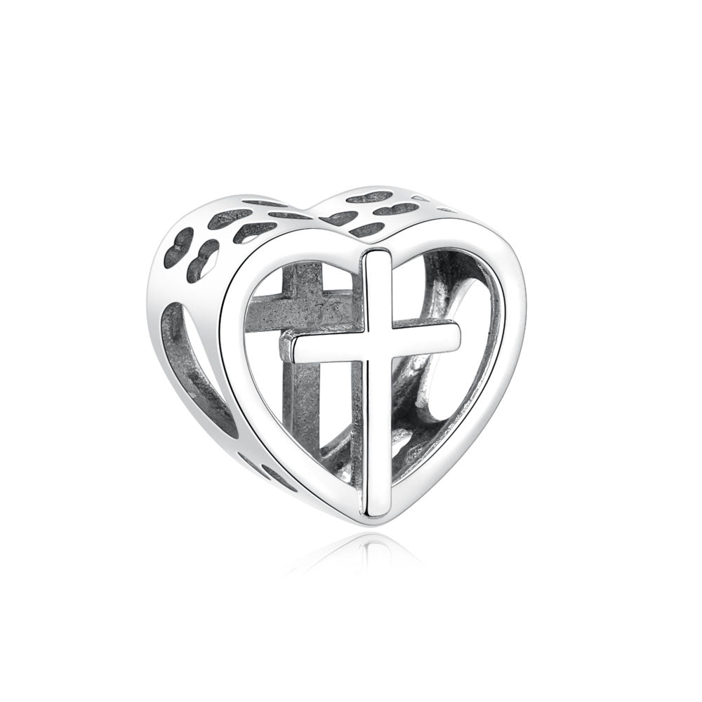"Sacred Core" Cross Heart Bead - 925 Sterling Silver Faith Charm