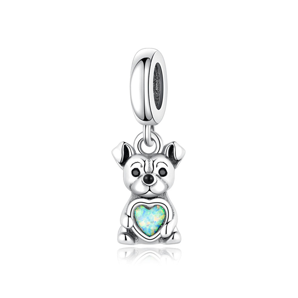 "Tender Guardian" Chihuahua Dangle - 925 Silver Opal Heart Charm