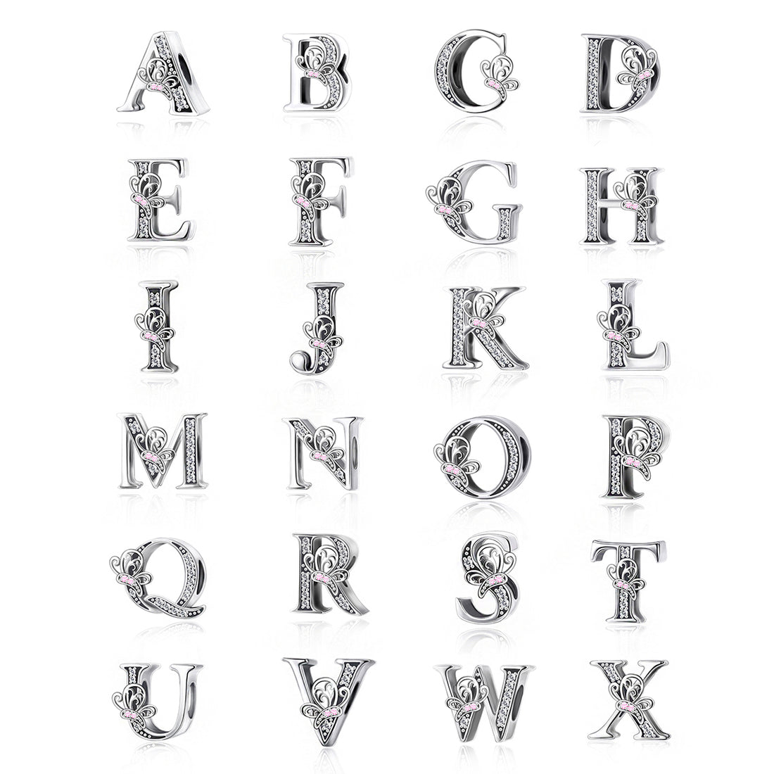 925 sterling silver Butterfly letters A-Z bead