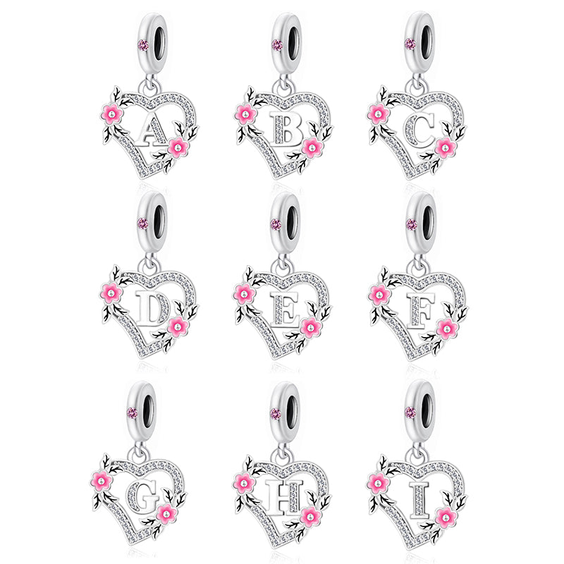 925 sterling silver Flower letters A-Z charms