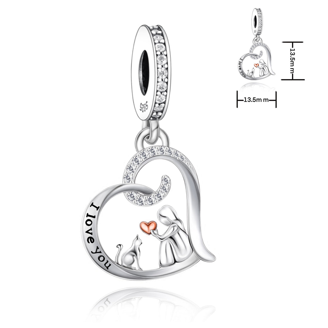 925 sterling silver heart-shaped cat