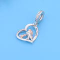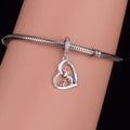 "Primal Love" Dinosaur Family Heart Dangle - Two-Tone Silver