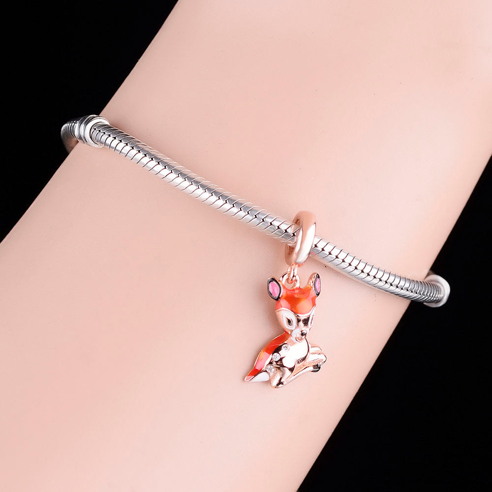 A warm 925 sterling silver, color coded electroplating, inlaid zircon, animal deer, bead pendant, silver jewelry, daily wear, jewelry for women, birthday gift