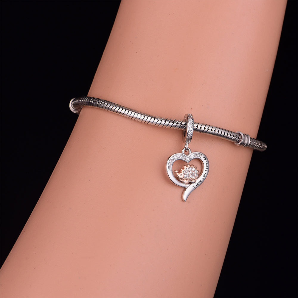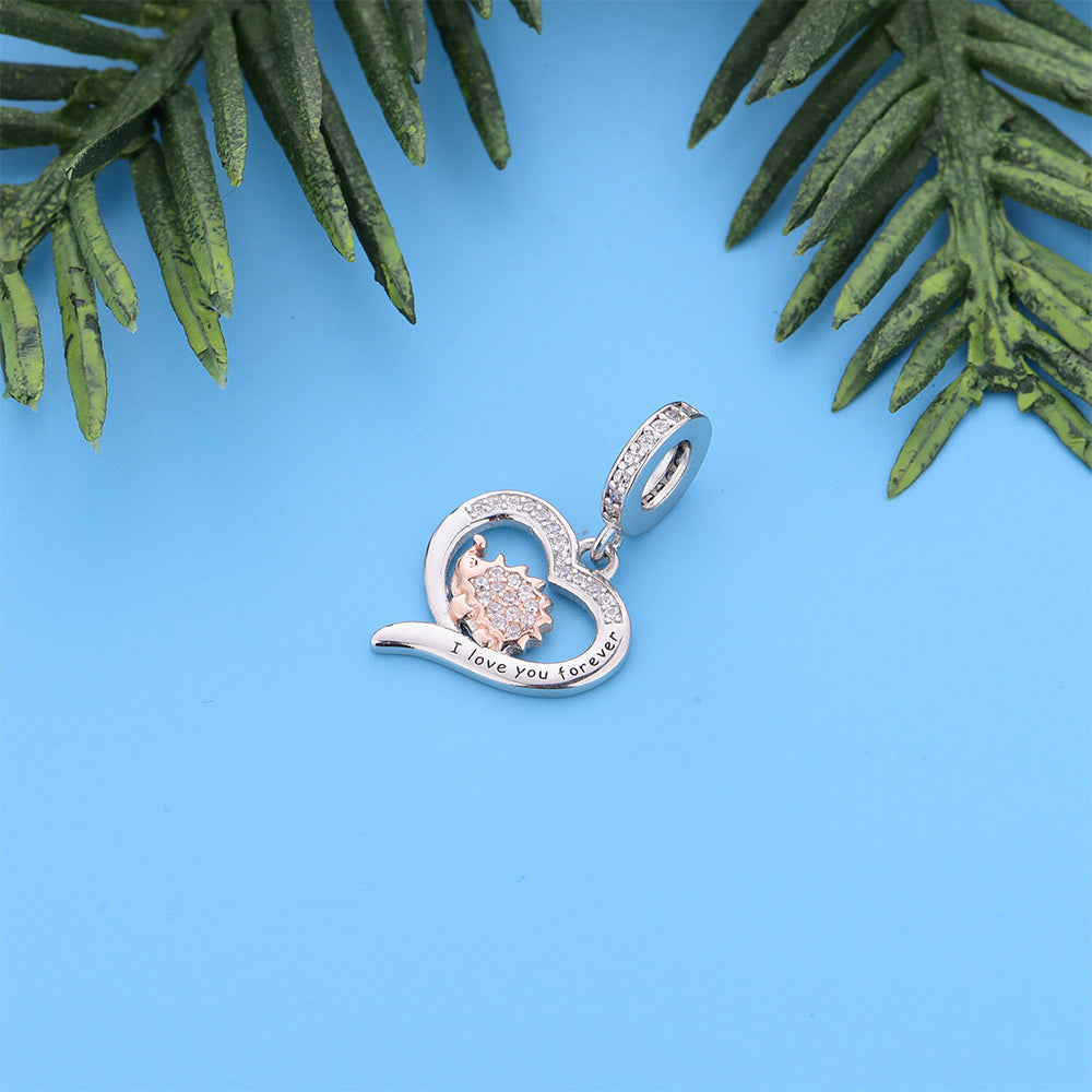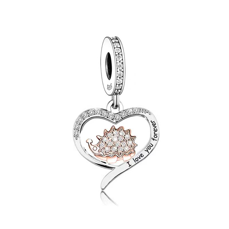 925 sterling silver animal hedgehog, an exquisite bead pendant, silver jewelry, daily wear, jewelry for women, color coded electroplating, heart-shaped bead, birthday gift, inlaid zircon
