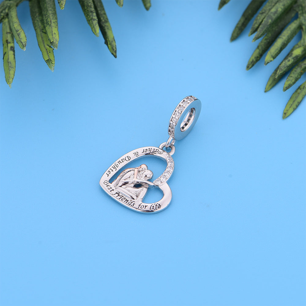 925 sterling silver color separation heart-shaped child carrying father, exquisite bead pendant, silver jewelry, daily wear, jewelry for women, color separation electroplating, heart-shaped bead, birthday gift, inlaid zircon
