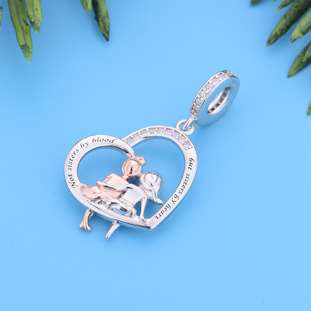 925 sterling silver color separation heart-shaped girl sitting together, a beautiful bead pendant, silver jewelry, daily wear, jewelry for women, color separation electroplating, heart-shaped bead, birthday gift, inlaid zircon