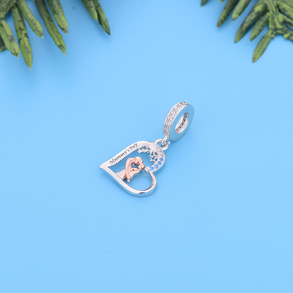 925 sterling silver color separated heart-shaped mother holding and looking at her child, a beautiful bead pendant, silver jewelry, daily wear, jewelry for women, color separated electroplating, heart-shaped bead, birthday gift, inlaid zircon