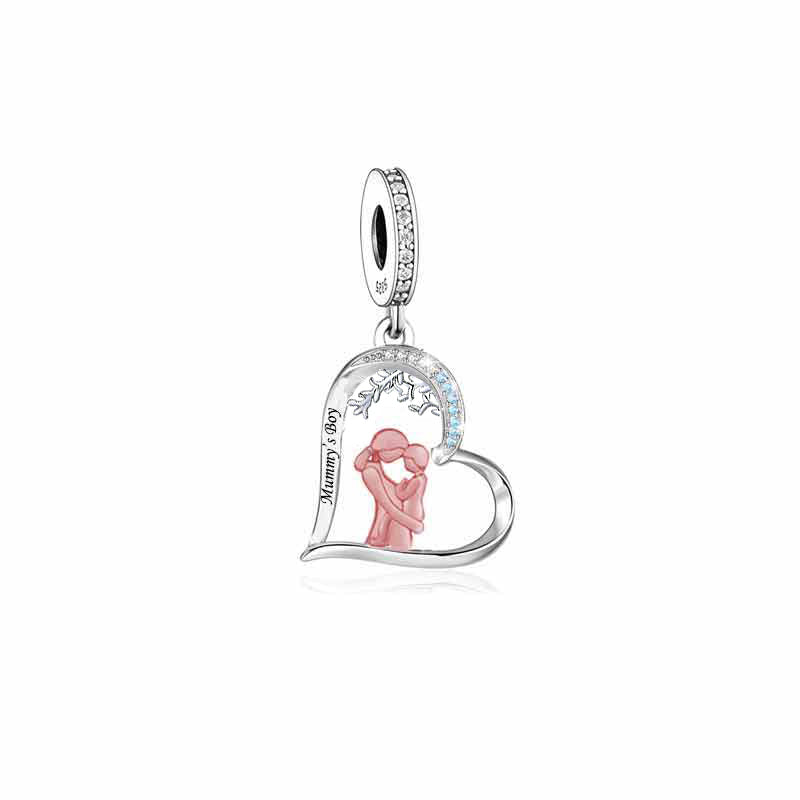 925 sterling silver color separated heart-shaped mother holding child and looking at child