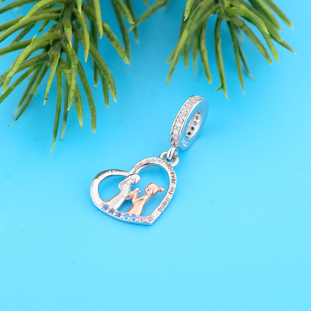 925 sterling silver color separated little girl eye contact, exquisite bead pendant, silver jewelry, daily wear, jewelry for women, color separated electroplating, heart-shaped bead, birthday gift, inlaid zircon