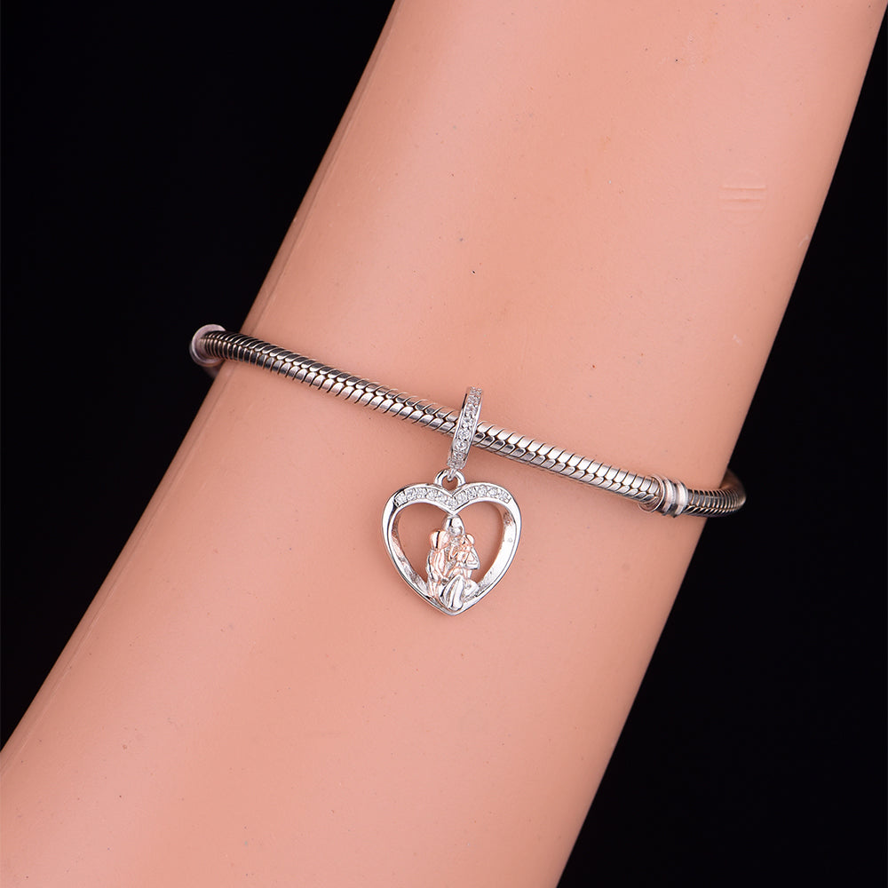 925 sterling silver color separated mother holding two children, exquisite bead pendant, silver jewelry, daily wear, jewelry for women, color separated electroplating, heart-shaped bead, birthday gift, inlaid zircon