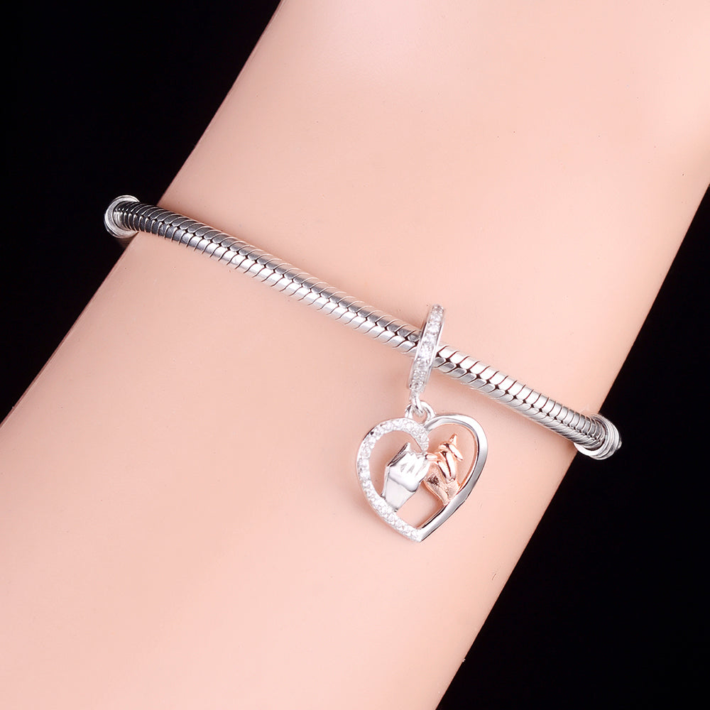 925 sterling silver color separation hook, an exquisite bead pendant, silver jewelry, daily wear, jewelry for women, color separation electroplating, heart-shaped bead, birthday gift, inlaid zircon