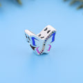 Embrace vibrant, playful charm with the Rainbow Crystal Butterfly Bead. Crafted from 925 sterling silver (compliant with EU REACH standards for lead, cadmium, and nickel), this eye-catching bead (size: approx. 14×12mm, with a 5mm core hole to fit most charm bracelets) features a butterfly shape: its wings have soft blue & pink enamel accents, paired with a line of shimmering rainbow-colored crystals for a lively, cheerful look.