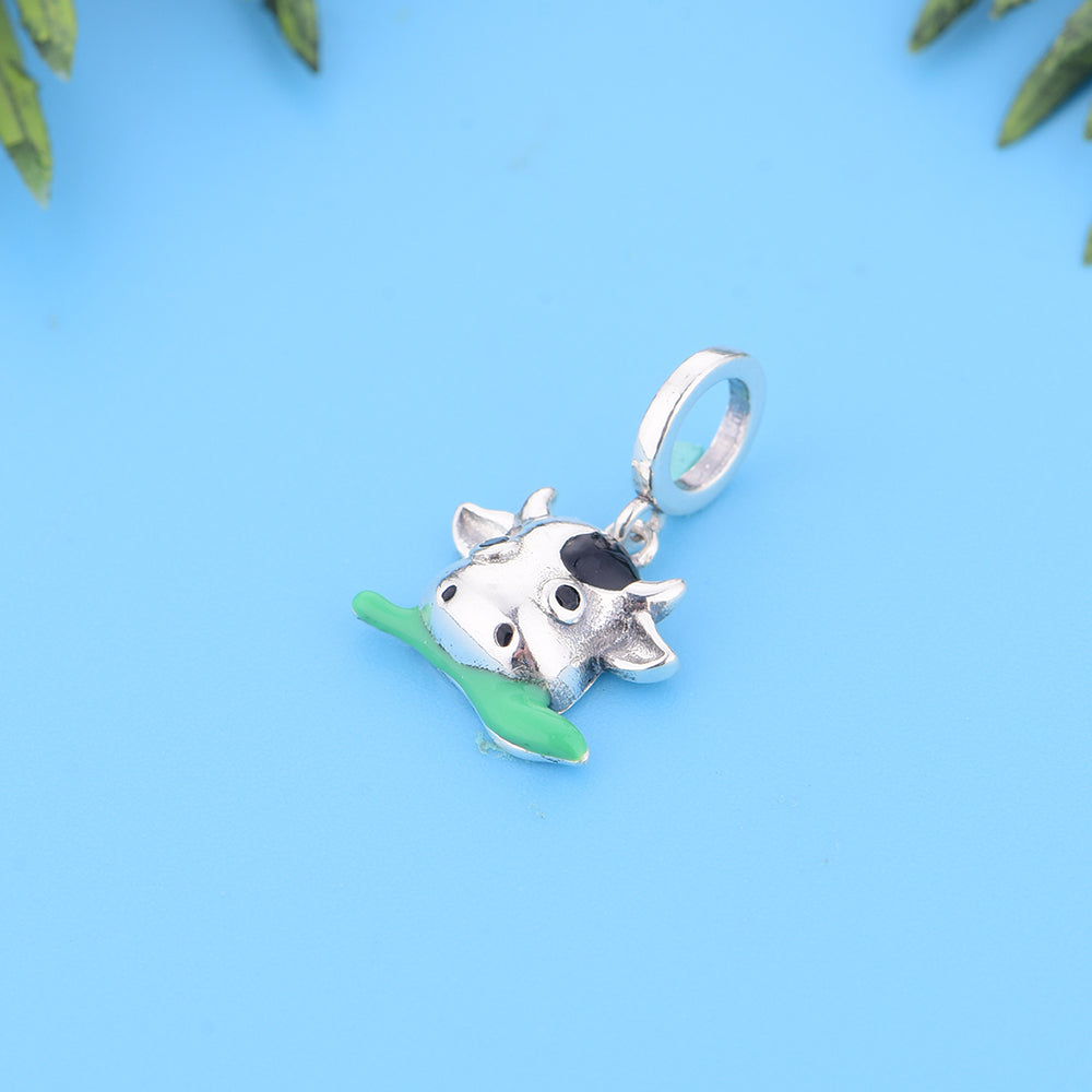 Celebrate adorable whimsical charm with the Cow Head & Leaf Dangle Charm. Crafted from 925 sterling silver (compliant with EU REACH standards for lead, cadmium, and nickel), this delicate piece features a cute cow head design (with classic black-and-white detailing and sparkling black crystal eyes) paired with a soft green enamel leaf for endearing, rural-inspired appeal. Perfect for adding a gentle, playful touch to your jewelry stack, it’s a lovely accessory for daily wear or a sweet gift for someone who treasures charming, animal-inspired symbolic pieces. Fit All Major Brands of Bracelets & Necklaces – a cozy, shimmering tribute to playful charm and pastoral warmth.