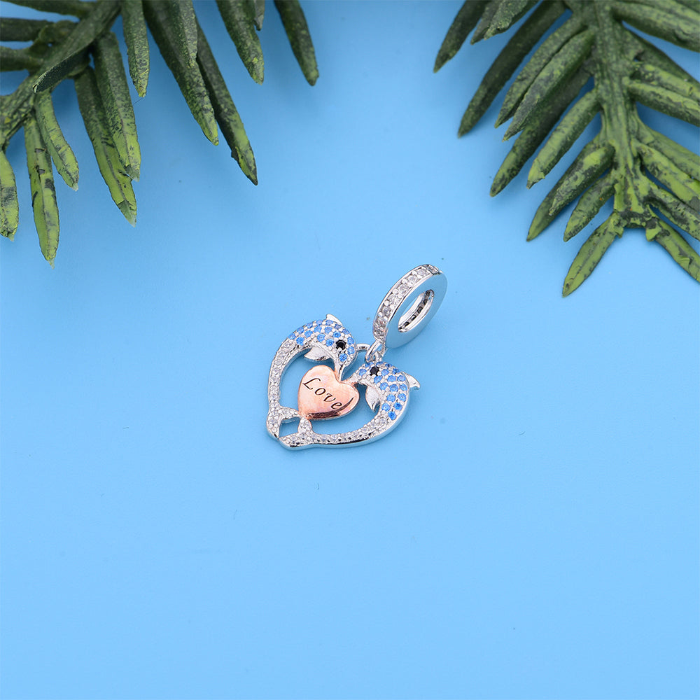 925 sterling silver dolphin heart shape