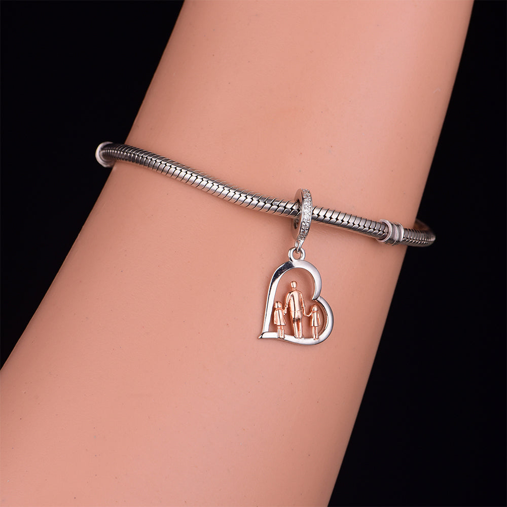 925 sterling silver father holding two daughters, a exquisite bead pendant, silver jewelry, daily wear, jewelry for women, color coded electroplating, heart-shaped beads, birthday gift, inlaid zircon
