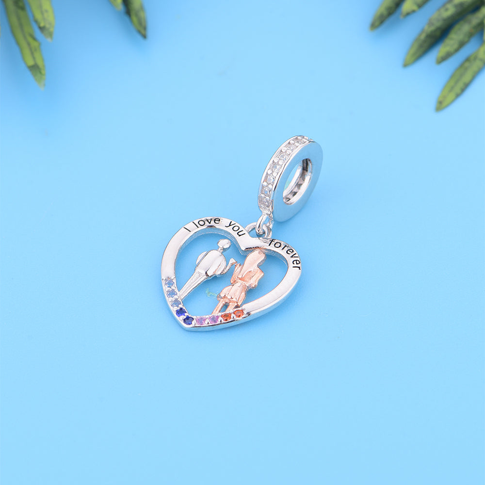 Celebrate the bond of companionship with the "Side-by-Side Heart" Charm by RADIVIDE Jewelry. Crafted from 925 sterling silver (with subtle color detailing for the figures), this heartfelt piece features a crystal-framed heart enclosing two standing figures—symbolizing togetherness—with a tiny rainbow accent adding a touch of warmth. The standard bead opening fits most charm bracelets, making it a tender token for partners, friends, or any cherished relationship.