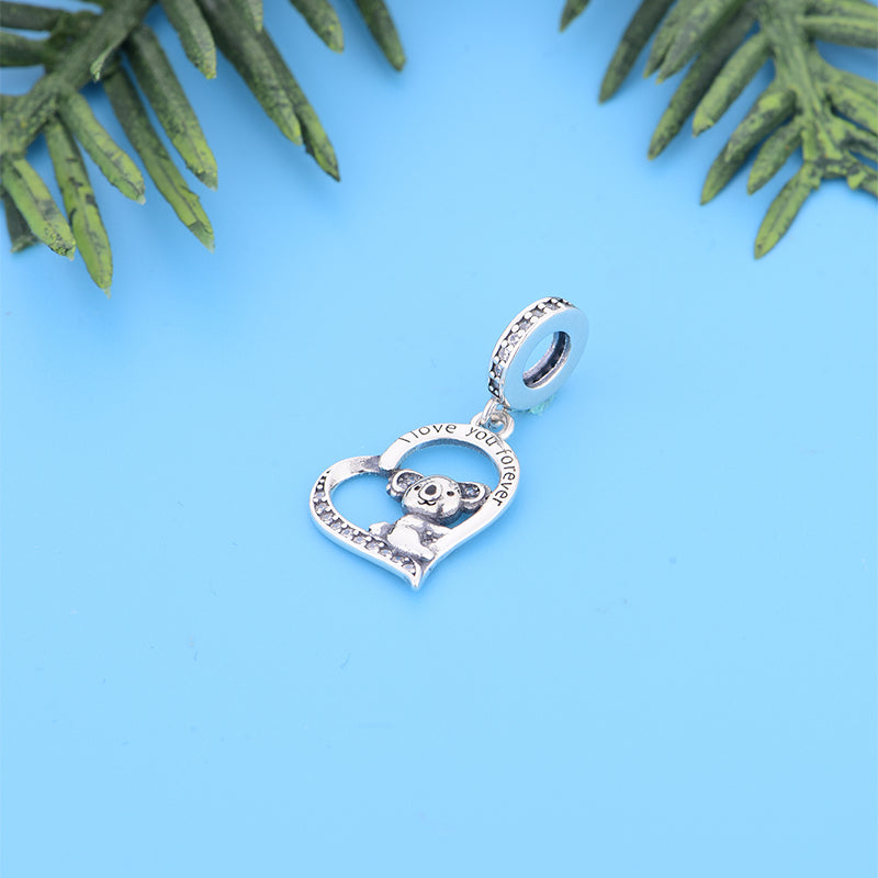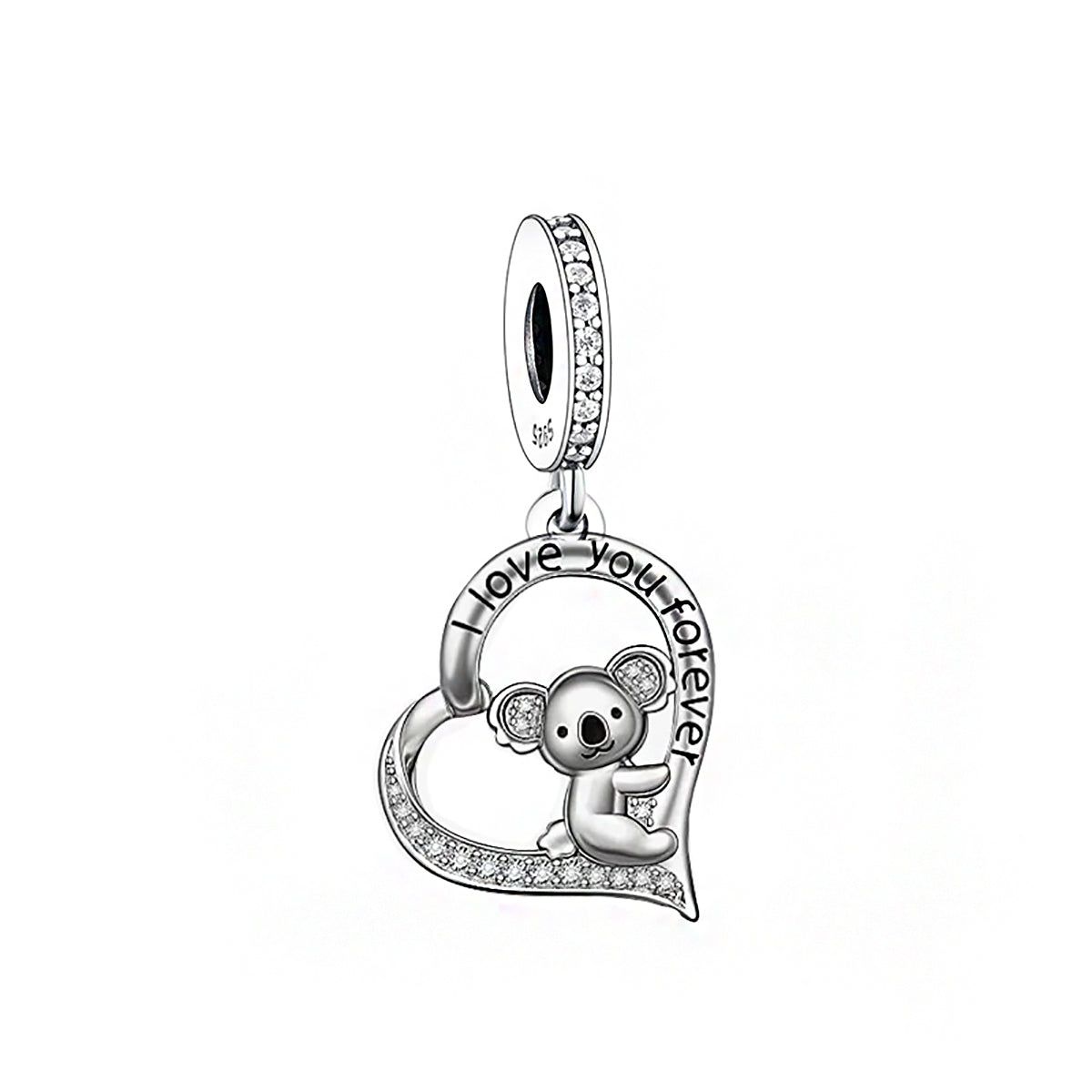 Honor your sweet connection with the "Koala Hug" Heart Charm by RADIVIDE Jewelry. Made of 925 sterling silver (marked with "S925"), this charm shines with sparkling crystal accents along the heart frame. Inside, an adorable koala (with detailed textured ears) curls around the heart, paired with the warm engraving "I love you forever" — blending playful charm with sincere devotion.