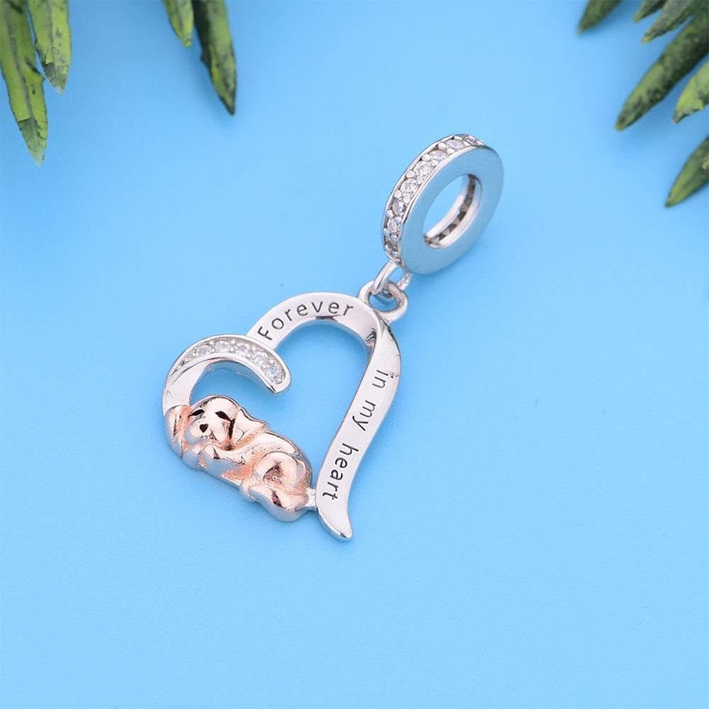 925 sterling silver heart-shaped puppy, an exquisite bead pendant, silver jewelry, daily wear, jewelry for women, color coded electroplating, heart-shaped bead, birthday gift, inlaid zircon