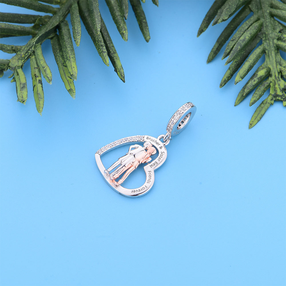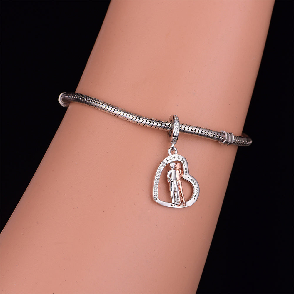 Celebrate romantic partnership with the "Heartbound Couple" Charm by RADIVIDE Jewelry. Crafted from 925 sterling silver (with two-tone detailing for the couple silhouette), this tender piece features a crystal-framed heart enclosing a standing couple — blending sweet, romantic symbolism with subtle sparkle. The standard bead opening fits most charm bracelets, making it a warm token of the bond between partners.