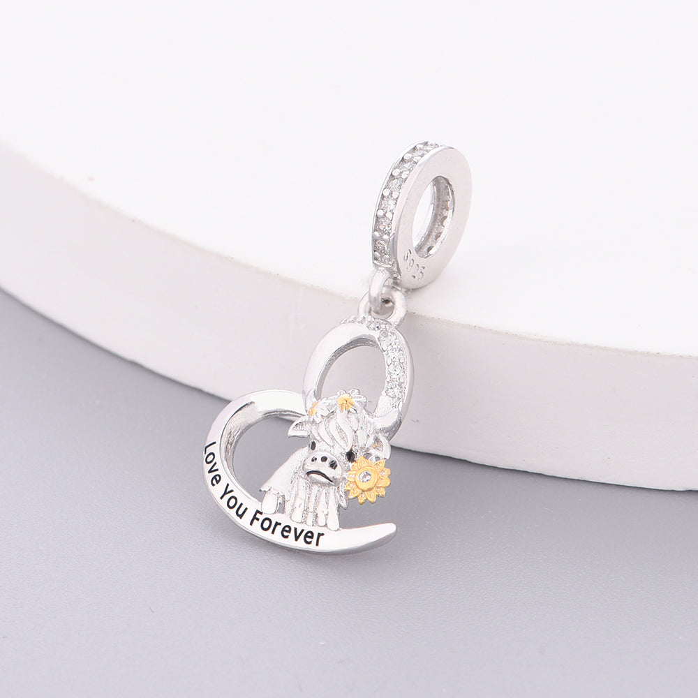 Celebrate gentle tender charm with the "Love You Forever" Highland Cow Heart Dangle Charm. Crafted from 925 sterling silver (compliant with EU REACH standards for lead, cadmium, and nickel), this delicate piece features an open heart frame (adorned with sparkling crystals), a cute Highland cow design, and yellow enamel daisies—paired with the engraved phrase "Love You Forever" for warm sentiment. Perfect for adding a soft, heartfelt touch to your jewelry stack, it’s a lovely accessory for daily wear or a sweet gift for someone who treasures gentle, nature-inspired symbolic pieces. Fit All Major Brands of Bracelets & Necklaces – a warm, sparkling tribute to lasting affection and cozy charm.