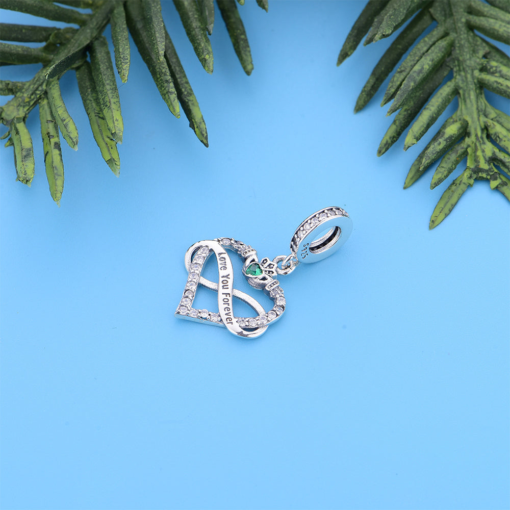 Celebrate endless luck and love with the "Infinite Lucky Heart" Charm by RADIVIDE Jewelry. Crafted from 925 sterling silver, this meaningful piece blends a heart frame (symbolizing affection) with an infinity symbol (for unbroken bonds), centered with a vivid green crystal (echoing good fortune). The sparkling design wraps dual symbolism in delicate detail, and the standard bead opening fits most charm bracelets.