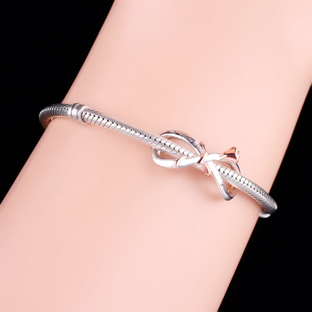 Celebrate endless connection with the "Infinite Bond" Bead by RADIVIDE Jewelry. Crafted from 925 sterling silver (paired with warm rose-gold accents), this meaningful piece features an infinity symbol design—where the two-toned twist represents unbroken ties (like love, friendship, or family). The polished finish and sleek shape blend minimalist elegance with heartfelt symbolism, and the standard bead opening fits most charm bracelets.