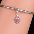 Celebrate bold romance with the "Crimson Heart Emblem" Charm by RADIVIDE Jewelry. Crafted from 925 sterling silver, this striking piece features a vivid red enamel heart (framed by intricate, crystal-adorned decorative detailing) — blending passionate color with elegant, emblem-like design. The standard bead opening fits most charm bracelets, making it a vivid token of unreserved affection.