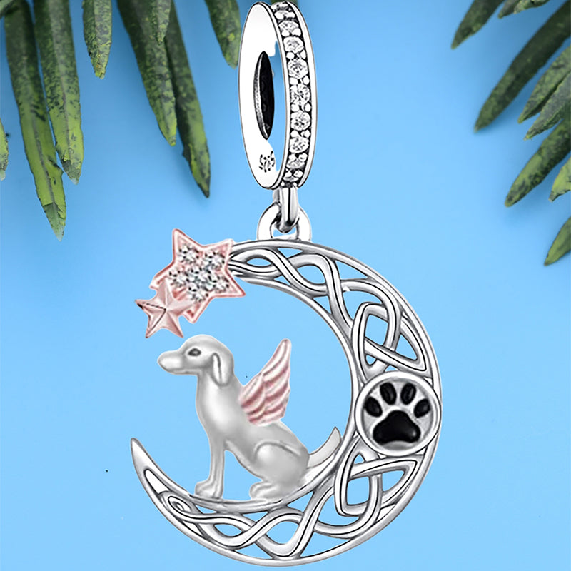 925 sterling silver puppy standing on the moon, an exquisite bead pendant, silver jewelry, daily wear, jewelry for women, color coded electroplating, heart-shaped bead, birthday gift, inlaid zircon