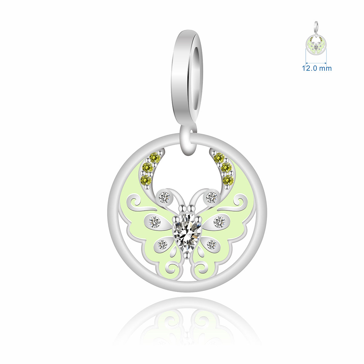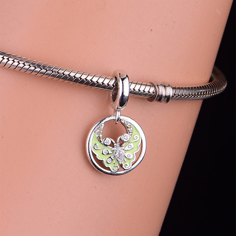 Celebrate delicate tender charm with the Pastel Green Butterfly Circle Dangle Charm. Crafted from 925 sterling silver (compliant with EU REACH standards for lead, cadmium, and nickel), this piece features a circular frame housing a butterfly design—paired with soft pastel green enamel wings, sparkling clear crystals, and subtle yellow crystal accents for gentle, luminous charm. Perfect for adding a soft, elegant touch to your jewelry stack, it’s a lovely accessory for daily wear or a heartfelt gift for someone who treasures gentle, symbolic nature pieces. Fit All Major Brands of Bracelets & Necklaces – a refined, shimmering tribute to grace and quiet beauty.