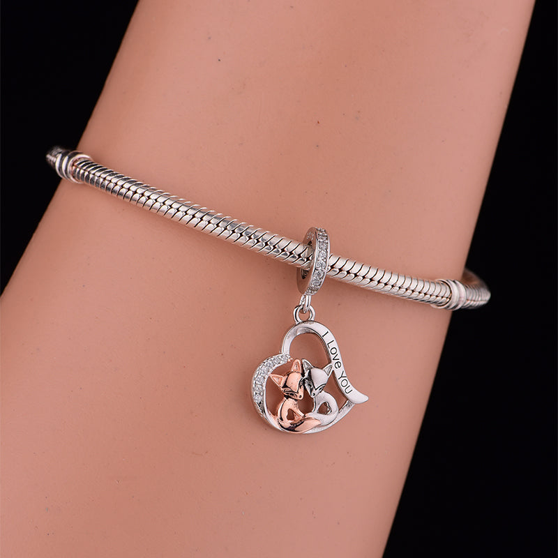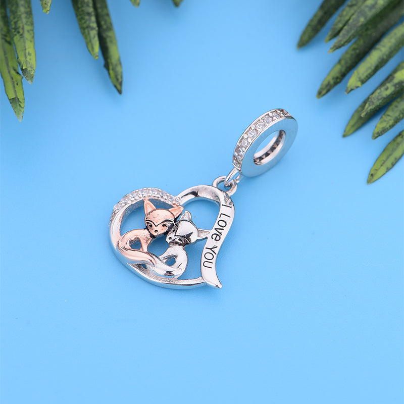 Celebrate your tender connection with the "Fox Tender" Heart Charm by RADIVIDE Jewelry. Crafted from 925 sterling silver (marked with "S925"), this charm glows with sparkling crystal accents on the heart frame. Inside, two graceful foxes (warm rose gold and sleek silver) curl closely, paired with the sweet "I Love You" engraving along the curved edge — blending elegant design with sincere devotion.