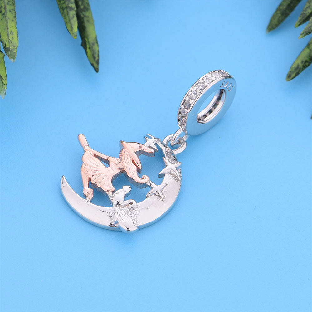 925 sterling silver witch sitting on a broom, a exquisite bead pendant, silver jewelry, daily wear, jewelry for women, color coded electroplating, heart-shaped beads, birthday gift, inlaid zircon