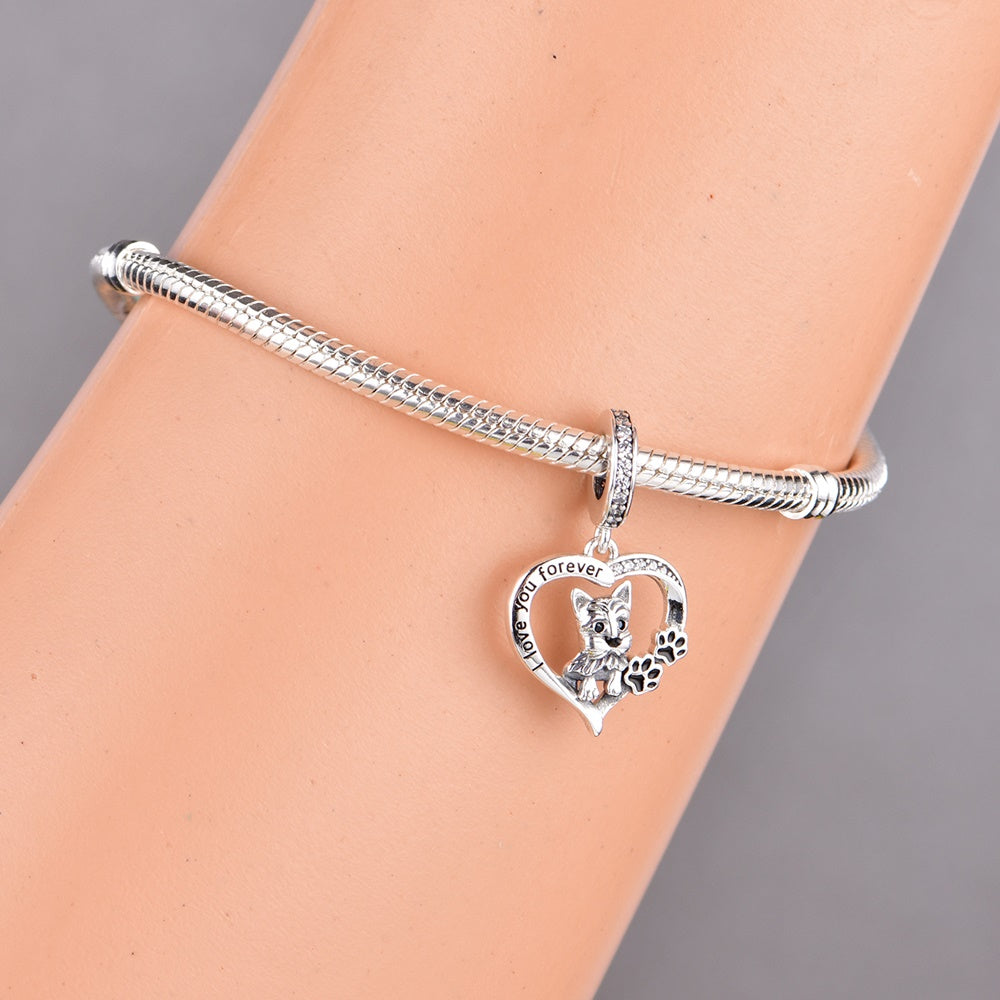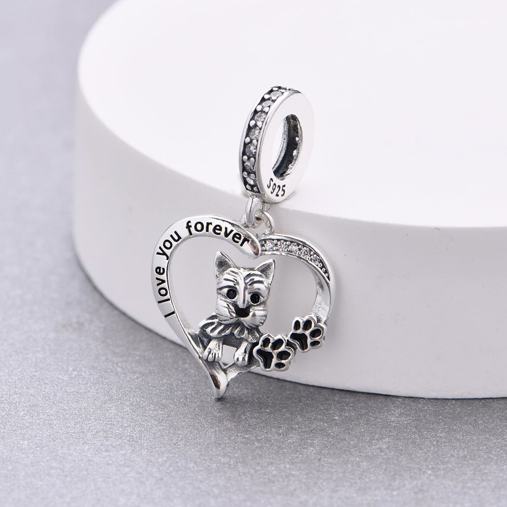 A warm 925 sterling silver, bead pendant, silver jewelry, daily wear, jewelry for women, Yorkshire Terrier,love you forever, Inlaid zircon, suitable as a gift for friends and family who love dogs