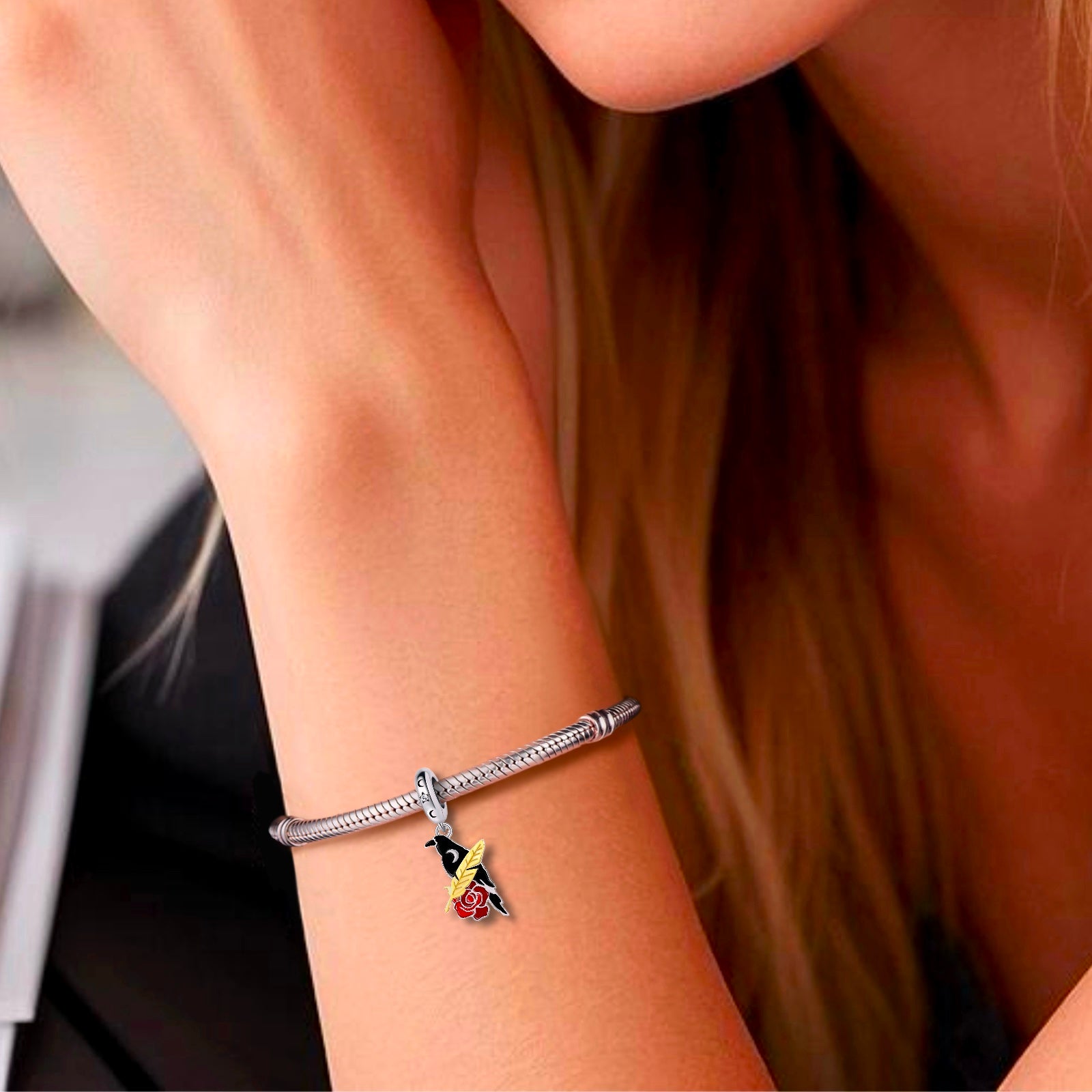 Celebrate your edgy, romantic spirit with the "Raven & Rose" Dangle Charm by RADIVIDE Jewelry.