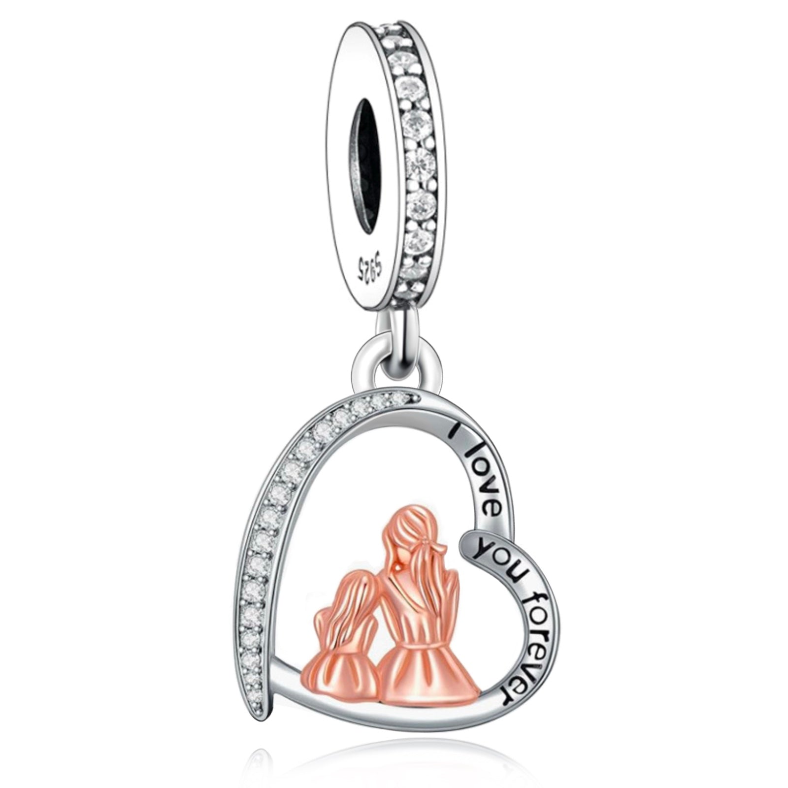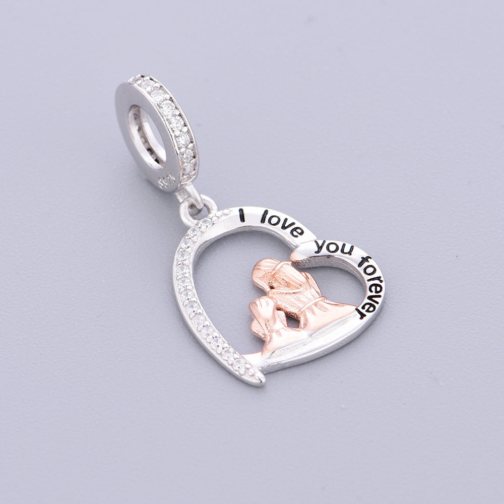 A warm 925 sterling silver, bead pendant, Daughter leaning against her mother charms , Color separation electroplating, inlaid zircon, silver jewelry, daily wear, jewelry for women, birthday gifts