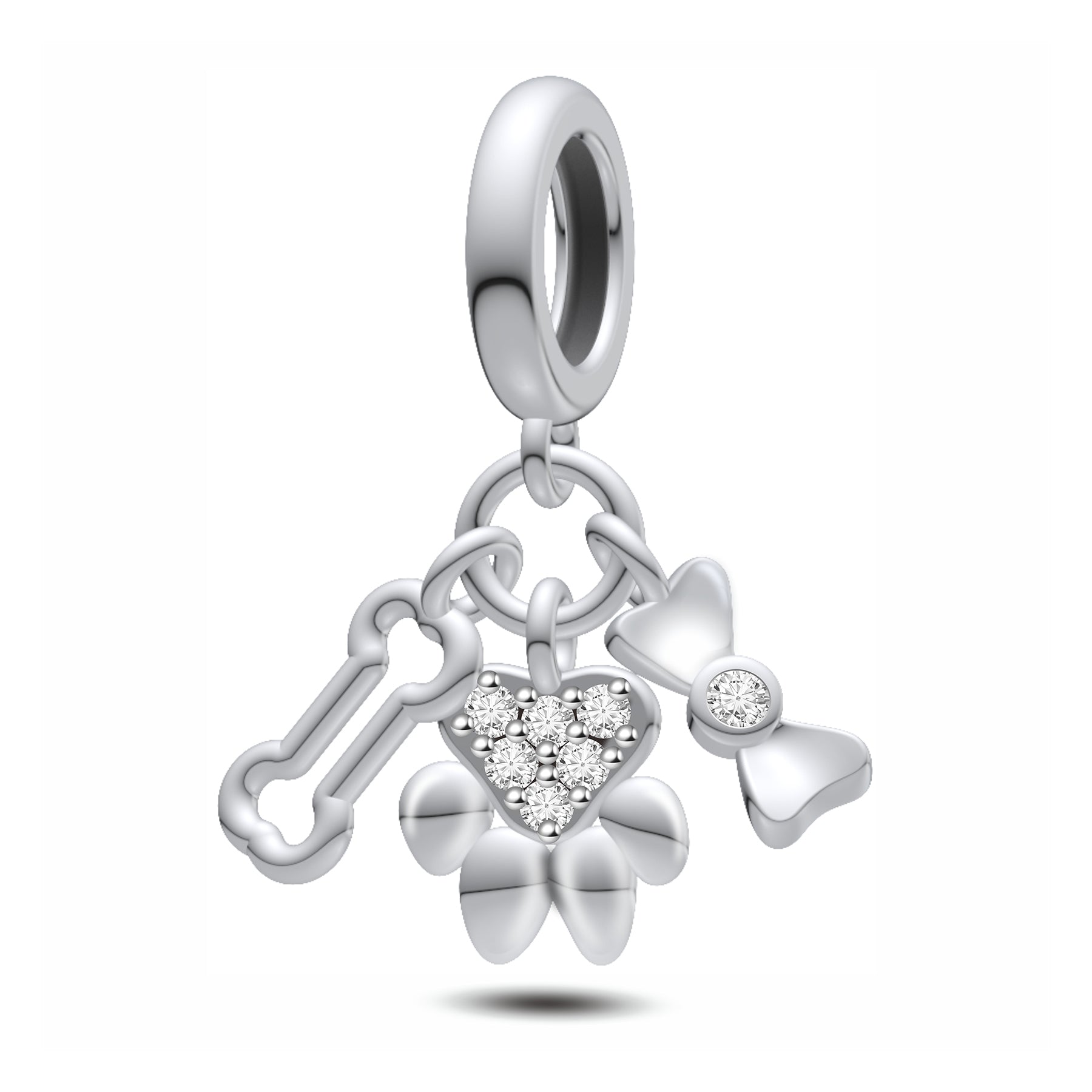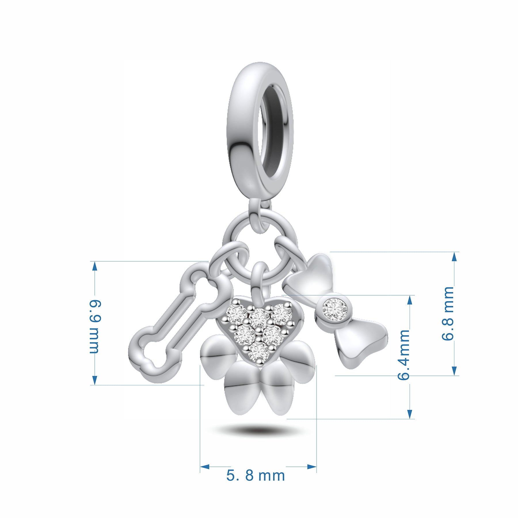 A beautifully crafted 925 sterling silver piece, bead pendant, dog claw bone bow bead, inlaid with zircon, silver jewelry, daily wear, jewelry for women, birthday gift