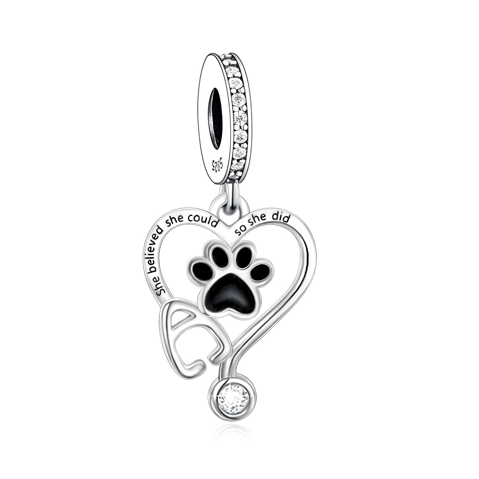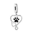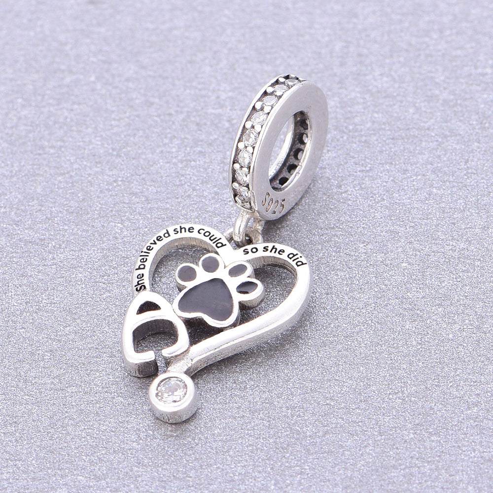 A warm 925 pure silver, bead, silver jewelry, Dog Claw Heart shaped stethoscope, Daily wear, zircon inlay, jewelry for women, birthday gift