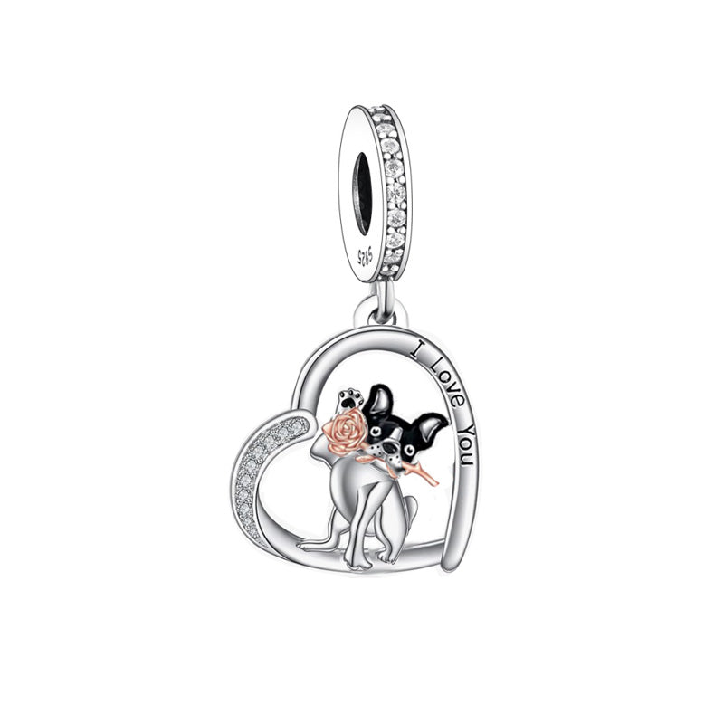 A beautifully crafted 925 sterling silver pendant with beaded embellishments, French Bulldog Love Bead, Inlaid zircon, silver jewelry, daily wear, jewelry for women, birthday gifts