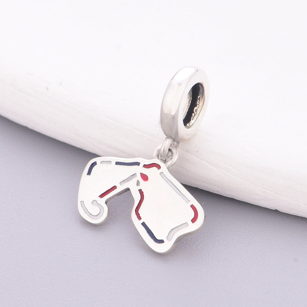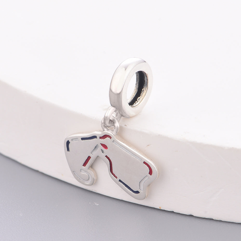 • Design: The charm features a precise outline of the Athens race track, with its signature turns and straights highlighted in bold red and blue enamel, echoing the colors of the Greek flag. The polished, smooth bail ensures it slides effortlessly onto any bracelet or necklace.