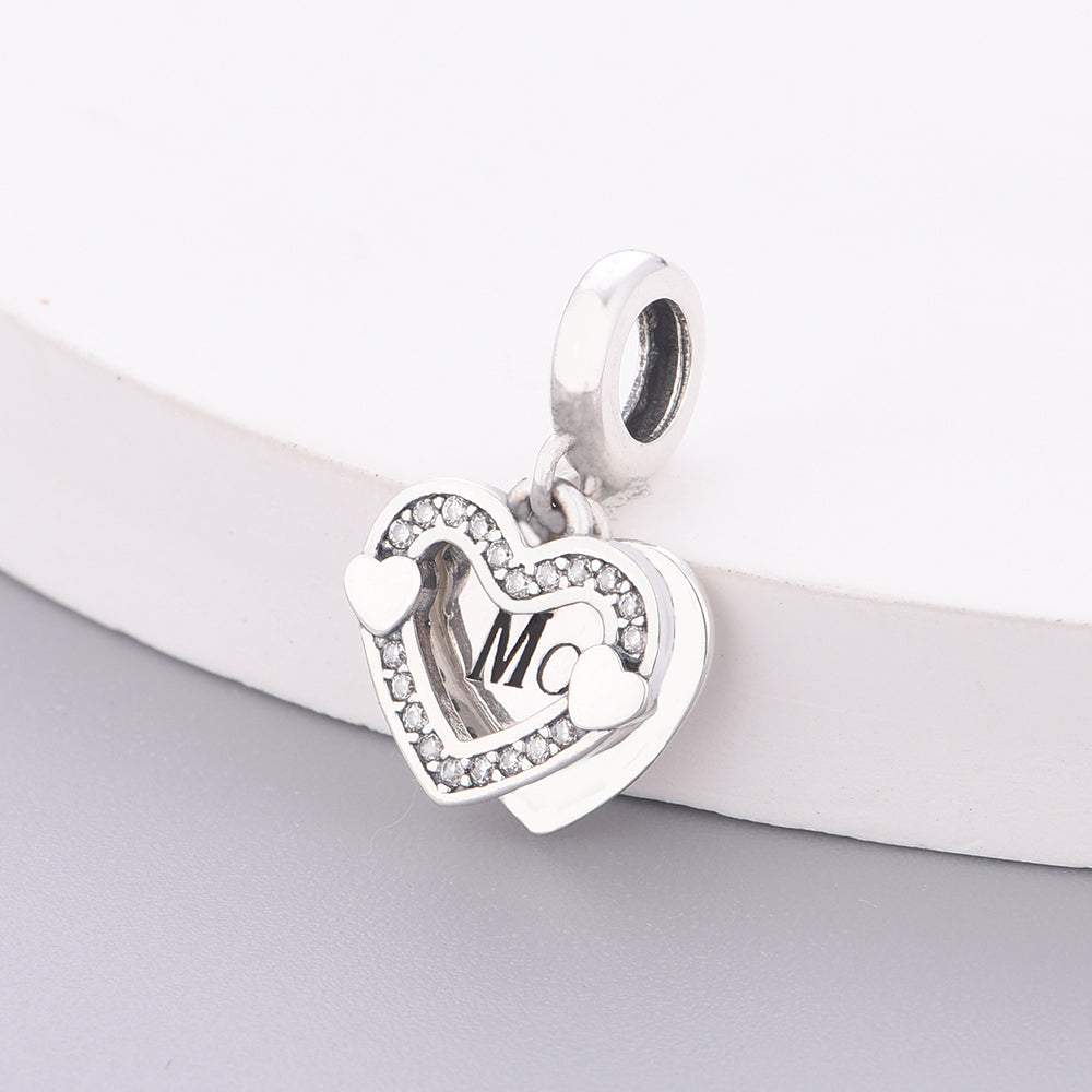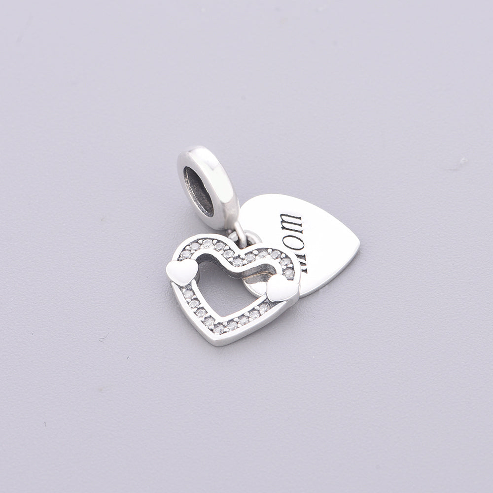 A warm 925 sterling silver, bead pendant, Heart shaped MOM charms , Color separation electroplating, inlaid zircon, silver jewelry, daily wear, jewelry for women, birthday gifts