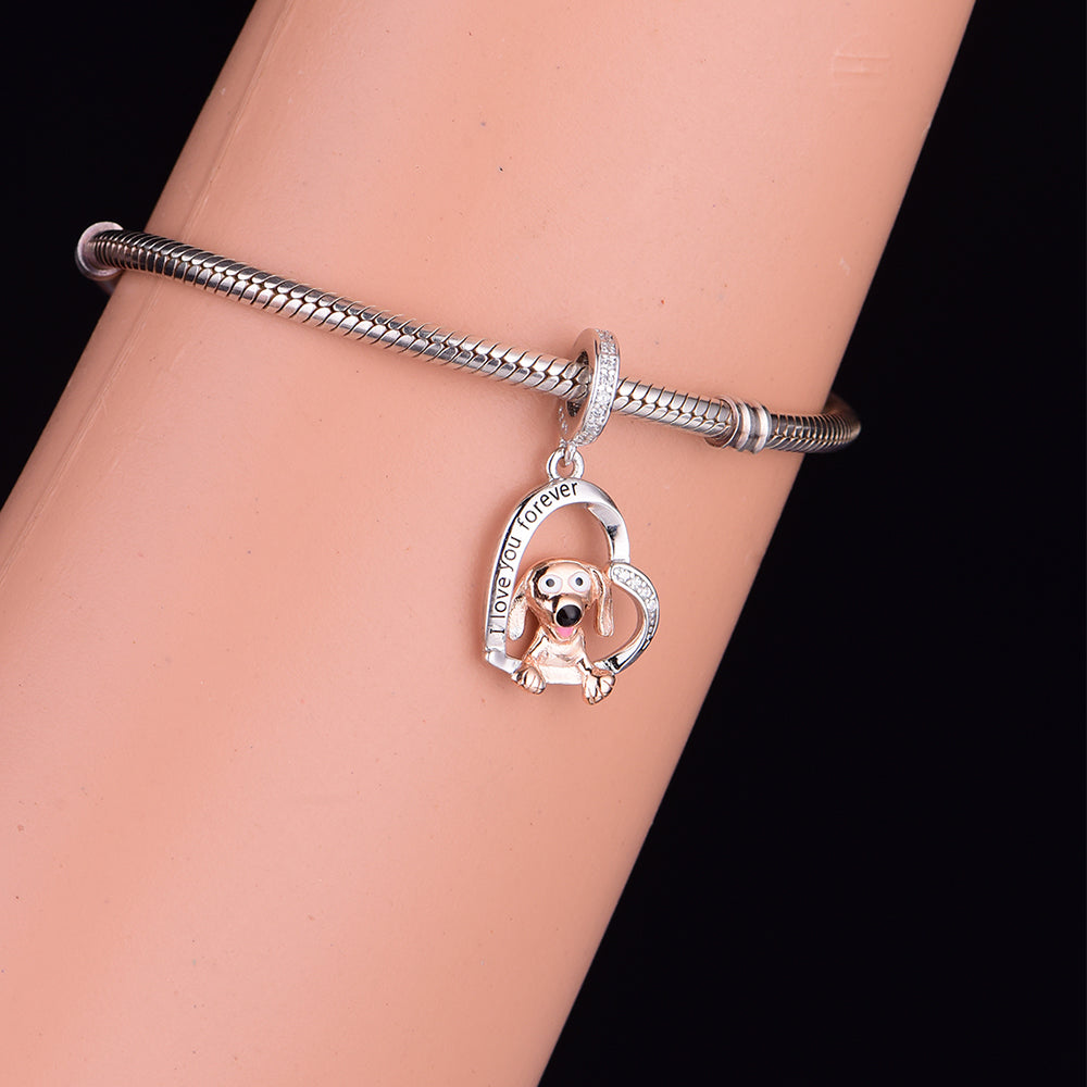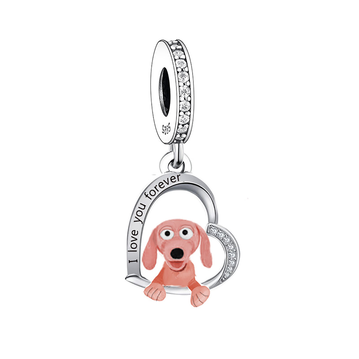 A warm 925 pure silver, bead, silver jewelry, i love you forever,Heart shaped sausage dog, Daily wear, zircon inlay, jewelry for women, birthday gift