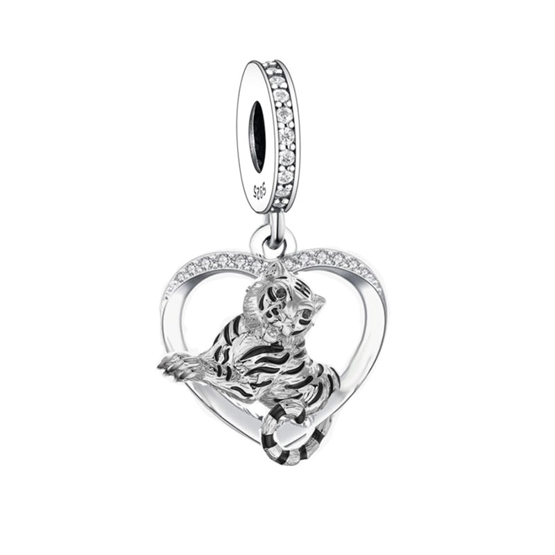 A beautifully crafted 925 sterling silver pendant with beaded embellishments, Heart shaped tiger charms, Inlaid zircon, silver jewelry, daily wear, jewelry for women, birthday gifts