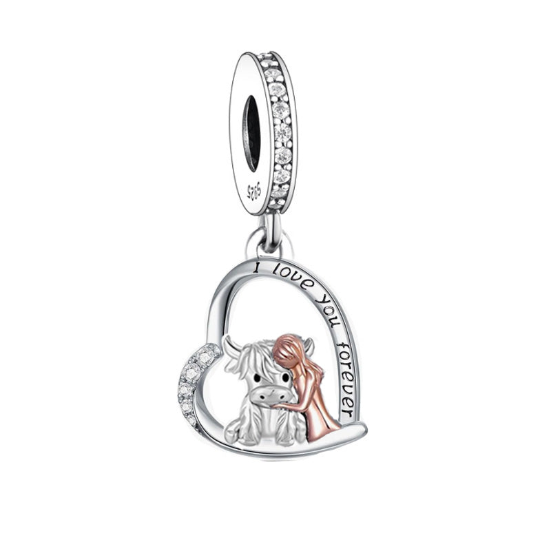 A beautifully crafted 925 sterling silver pendant with beaded embellishments, Highland Bull Love String Decoration, Color separation electroplating, inlaid zircon, silver jewelry, daily wear, jewelry for women, birthday gifts