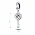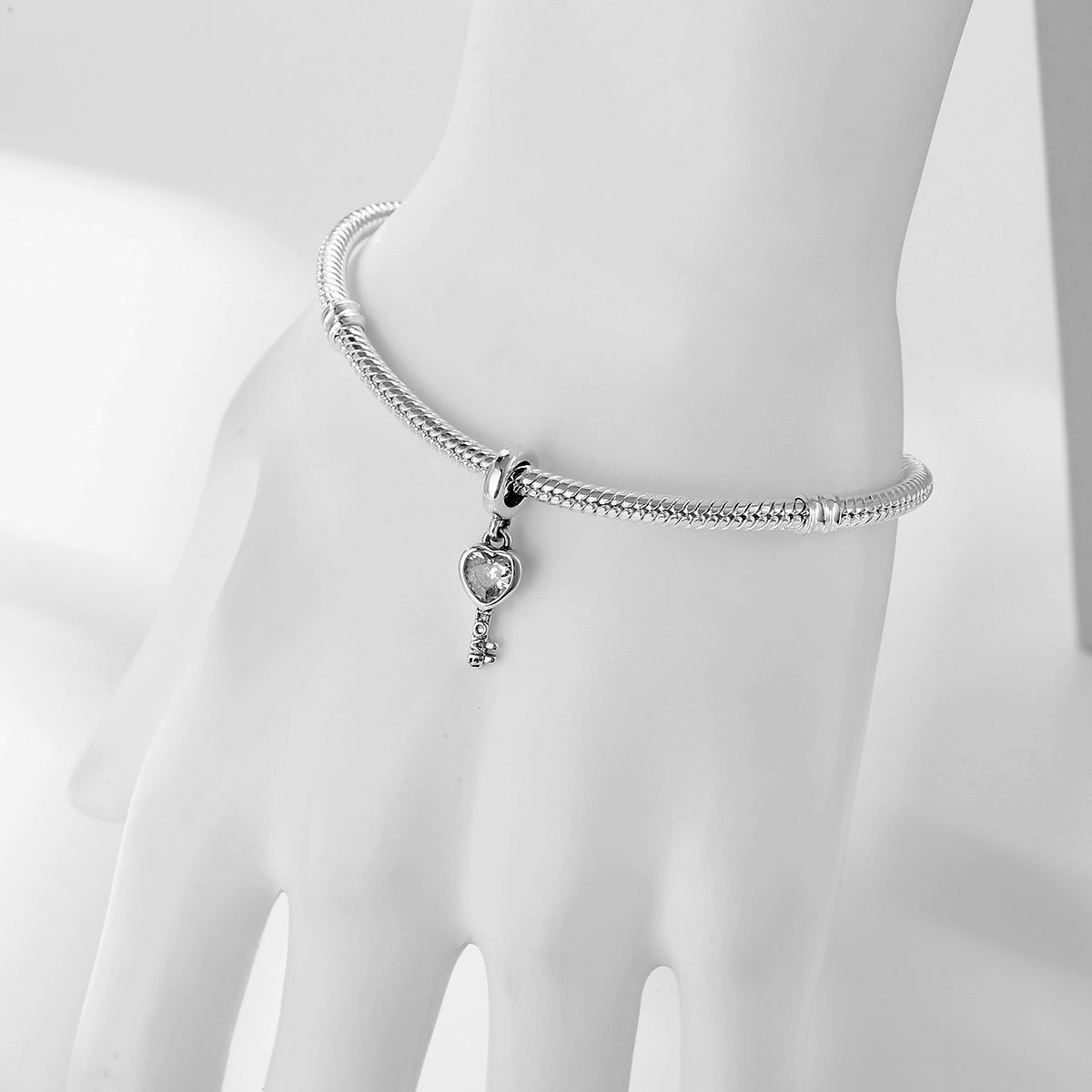 • Design: A polished key pendant engraved with "LOVE", topped with a heart-shaped frame encrusted with a brilliant cubic zirconia. The sleek, modern bail ensures it slides smoothly onto any bracelet.